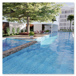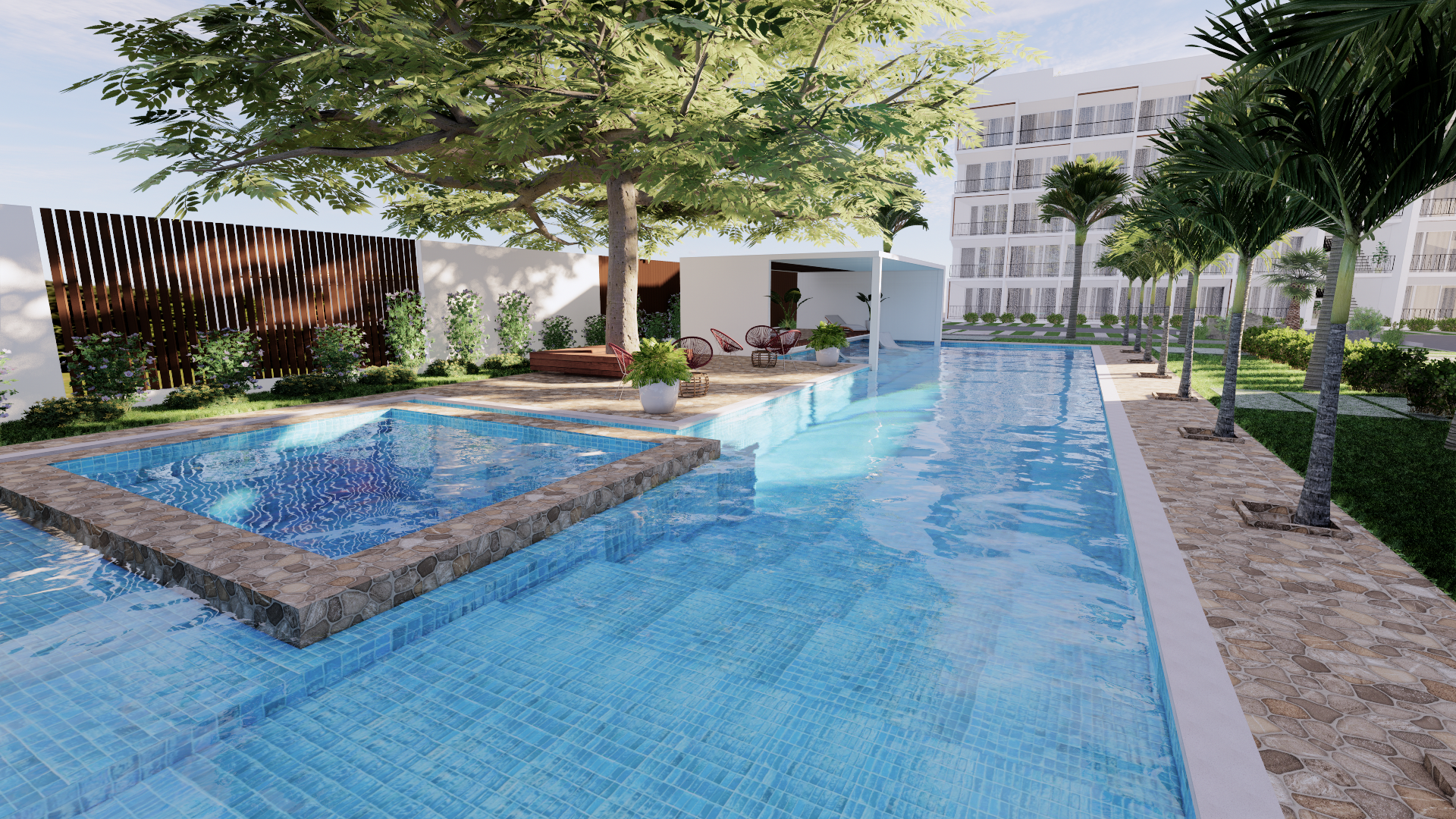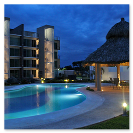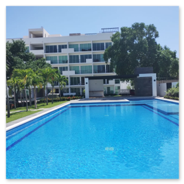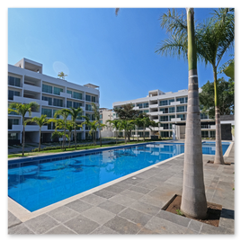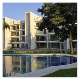 Dentro del plan maestro de Residencial Diamante concebimos condominios verticales y el flujo de ventas nos catapultó a construir el Condomino Lila, repetimos el concepto para mantener el estilo arquitectónico en 7 torres de 8 departamentos cada una. Roof garden privado así como alberca, palapa y jardines.