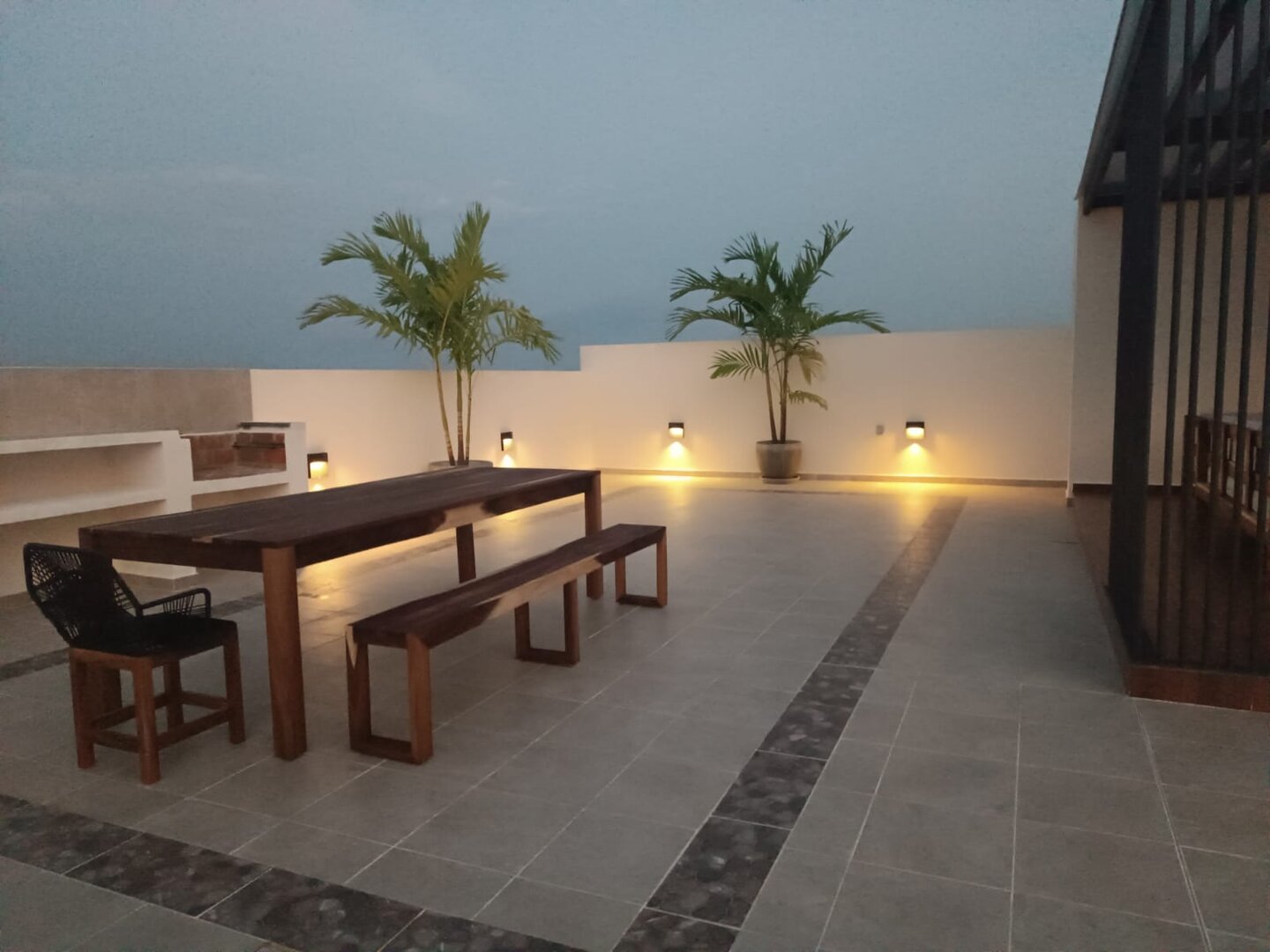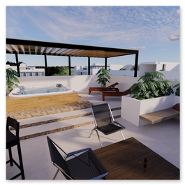 En Residencial Diamante desarrollamos un nuevo concepto de condominio, en donde añadimos áreas comunes generales que dan mayor valor a las propiedades. Un Roof Garden de uso general, con área de jacuzzis, bar y área de asadores y zona de comida.